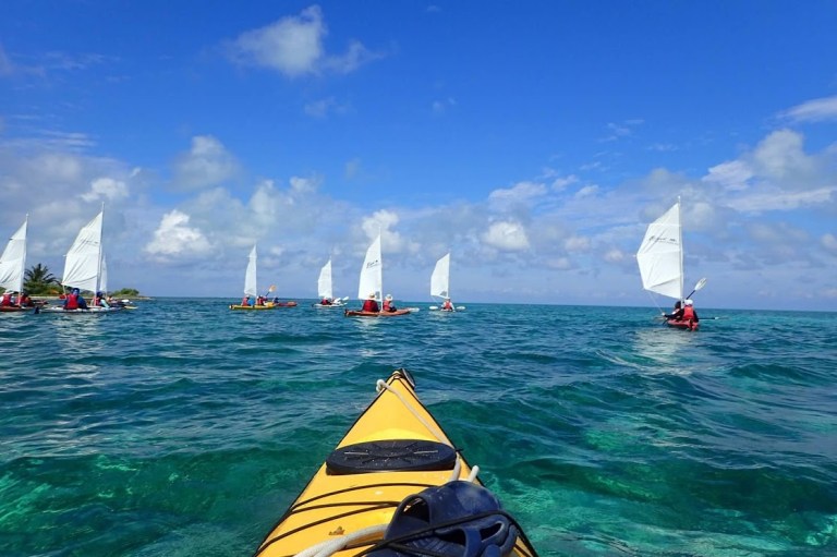 Kayaking with a sail attached made for some pretty easy paddling as we visited neighboring Long Caye, seven miles from Half Moon Caye.