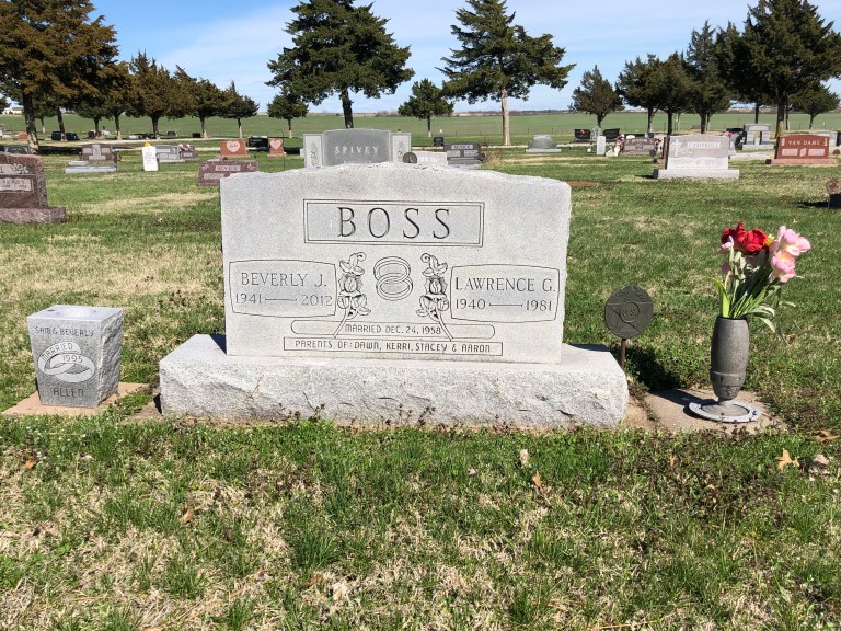 I have been to my grandparents graves at least 10 times in the past 30 years. I was confident I knew exactly where they were at Highland cemetery. I was wrong. I had to break down and use the cemetery directory to find the right Section. Off we went in search of my grandparents in Section 6. Grandma and granddad are buried together next to their daughter Phyllis Boss Patton. We then visited the graves of my Uncle Larry and Aunt Beverly in Section 23. We also spent time with Beverly‘s family, the Harrises.