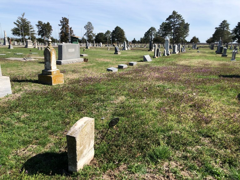 The lawn at Highland Cemetery hasn’t been mowed this spring yet and there was a purple carpet and flowers throughout the grass of the cemetery that was very soothing.